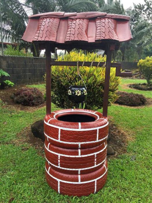 Un parterre de fleurs en pneu de voiture est une solution idéale pour ceux qui souhaitent obtenir une sensation de confort rustique sur leur site. De plus, le puits mettra en valeur la beauté de vos fleurs.