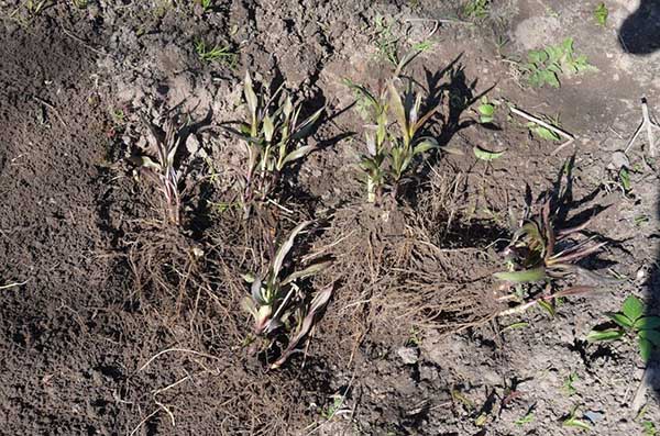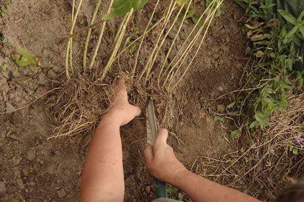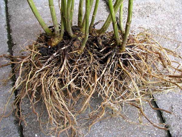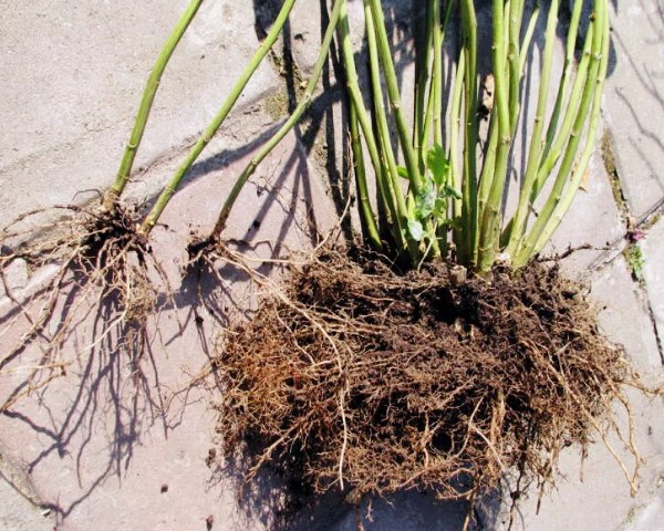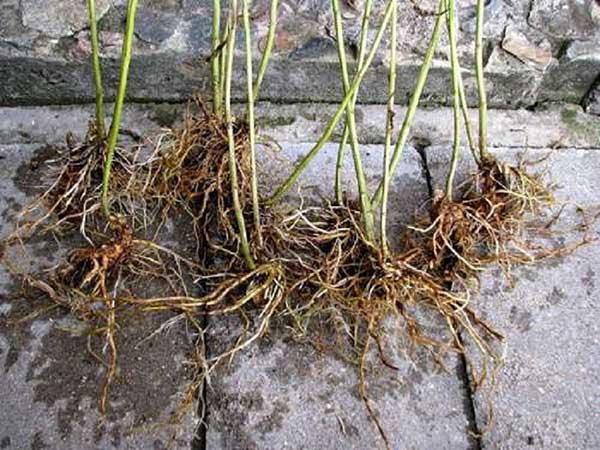 Pour faciliter la division, certains cultivateurs lavent spécialement à l'eau et libèrent les racines des plantes du sol, mais ce n'est pas du tout nécessaire (travail supplémentaire).