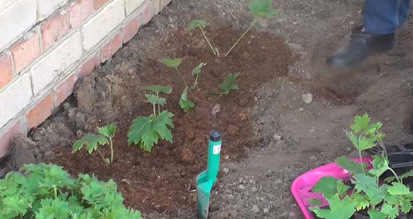 Il est préférable de planter le delphinium dans le sol à une distance de 20-30 cm les uns des autres dans des trous ou directement dans une petite tranchée.