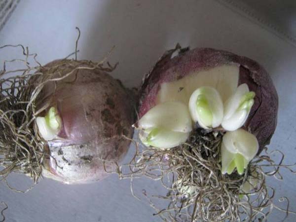 Si, pendant le creusement, vous voyez des bébés sur les bulbes, vous pouvez les séparer et ainsi multiplier les jacinthes, en les conservant en été et en les plantant séparément à l'automne.