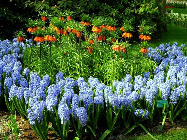 Beaucoup de gens plantent des jacinthes sous les arbres car elles fleurissent à un moment où il n'y a toujours pas de feuillage dense. Cependant, il faut garder à l'esprit que les arbres aspirent presque tous les nutriments du sol.