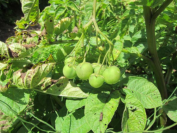 Certains résidents d'été sont guidés par maturation des fruits à graines de pommes de terresituées au sommet des sommets, elles sont parfois appelées «tomates» de pomme de terre verte par les gens.