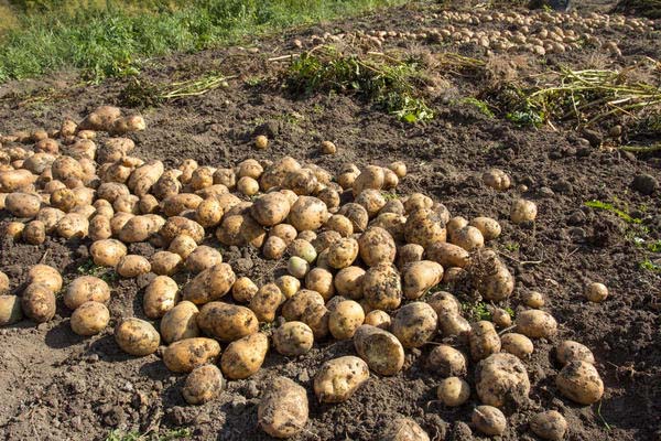 Important! Les pommes de terre ne doivent pas être déterrées pendant qu'il pleut et que le sol est humide et mouillé. Premièrement, il sera assez problématique de le déterrer. Deuxièmement, pour sécher, vous devrez apporter des tubercules sales dans la pièce.