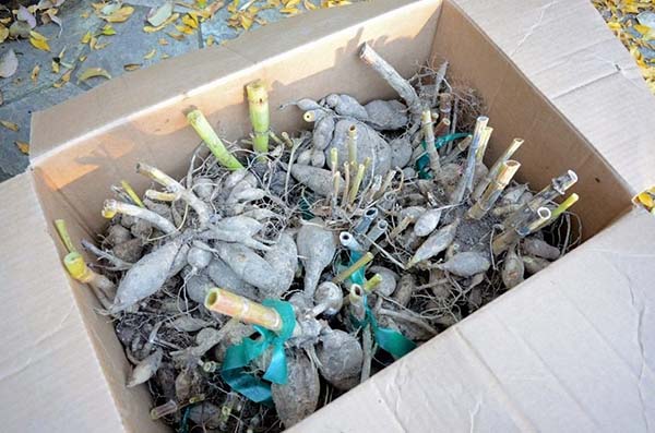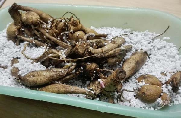 Si vous avez déposé tubercules malades (pré-traités) puis leur meilleur envelopper en plus de papier ou pas du tout mettre séparément des rhizomes sains.
