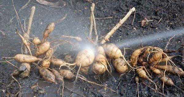 Bon à savoir! Il existe une opinion selon laquelle il n'est pas nécessaire de nettoyer les tubercules du sol pour qu'ils ne se dessèchent pas. Mais si vous ne le faites pas, de la pourriture ou des dommages mécaniques peuvent rester sous la saleté, qui doit être traitée avant le stockage, sinon les rhizomes pourriront simplement plus tard.