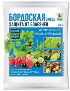 - Sur les bourgeons gonflés, mais avant qu'ils ne fleurissent, c.-à-d. saupoudrer sur non ouvert (soi-disant stade du "cône vert")... Pour ce faire, utilisez le plus agents de protection de contact simples à base de sulfate de cuivre — sulfate de cuivre ou Liquide bordelais (Solution à 3%, puis seulement 1%)