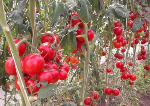 Et autres variétés indéterminées à fruits rouges et hybrides: Budenovka, Eupator, Intuition, pied bot Mishka, Puzata Khata, Hundred Pounds, Tolstoy, Jubilee Tarasenko et autres.