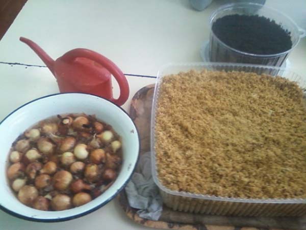 - Les plats avec des oignons sont placés à l'endroit le plus éclairé, le liquide requis est ajouté au besoin.