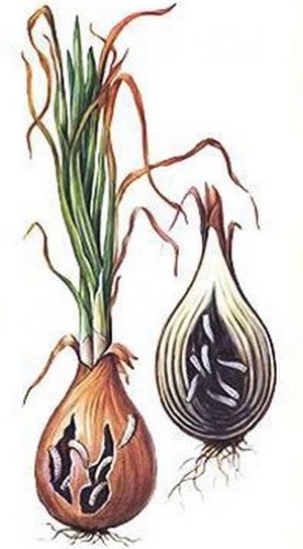 Au fait! Ce sont les larves de mouche de l'oignon qui nuisent à l'oignon, en d'autres termes, la mouche elle-même est un ravageur indirect, le principal ennemi, ses larves.