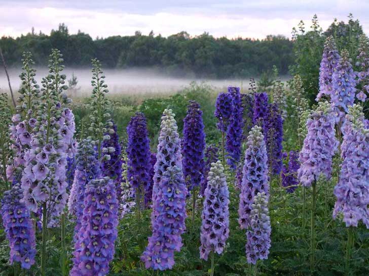 La couleur du delphinium est très variée et peut aller du rose pâle au bleu vif. Dans les régions du sud du pays, il fleurit en mai-juin et fleurit à nouveau à l'automne.Quant à la Russie centrale, la floraison a lieu en été - mi-juin et dure jusqu'à fin juillet. Elle peut reprendre, à condition que les pédoncules soient coupés après la première floraison.
