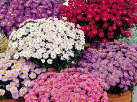 Le bel aster vivace peut avoir une couleur différente - rouge, blanc, jaune, violet, rose, lilas. Par conséquent, avec l'aide d'asters vivaces, vous pouvez former des parterres de fleurs élégants, arc-en-ciel et lumineux.