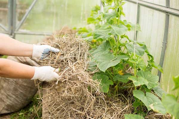 Il est possible de réduire les fortes fluctuations de température par paillage, en particulier pour les plates-bandes de concombres. De plus, ils peuvent être paillés immédiatement après la plantation de semis dans le sol.