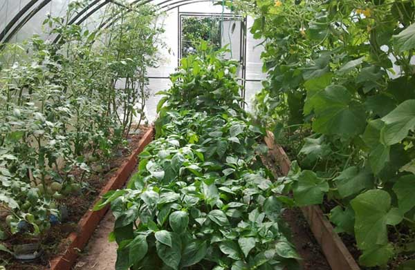 Ainsi, en fonction du nombre de lits dans la serre, vous pouvez placer des tomates et des concombres comme suit: