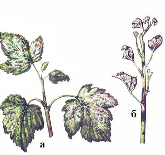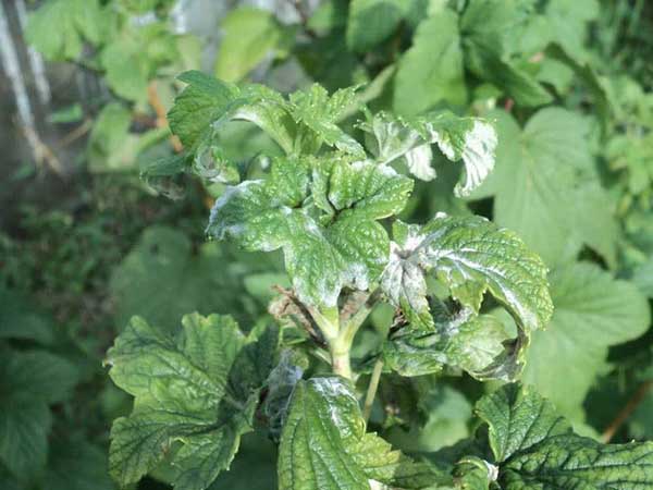 Sur la groseille la maladie se manifeste presque immédiatement après l'ouverture des feuilles. Toutes les parties touchées du buisson sont recouvertes d'une fleur poudreuse de blanc (c'est la sporulation conidienne du champignon), tandis que: