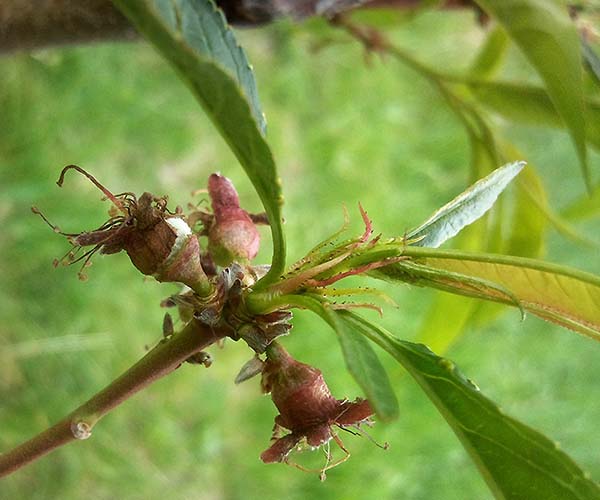 Immédiatement après la floraison, lorsque de petits ovaires sont déjà formés, il est nécessaire de produire transformation complexe des pêches contre les maladies (surtout contre moniliose)et contre les ravageurs (surtout de mites).