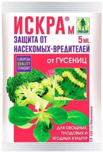 - Iskra M (Malathion (Karbofos), insecticide intestinal, contre les pucerons, les mites rénales, les moucherons des feuilles et des pousses, les vers à feuilles, les drageons, les mouches à scie, les cochenilles, les fausses écailles);