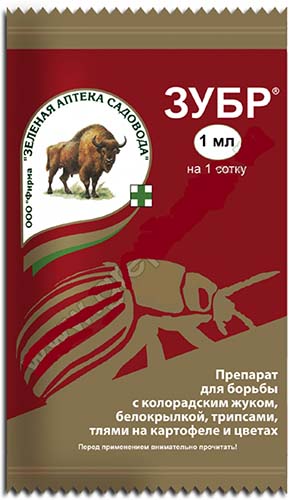 S'il vous semble que "Karbofos" signifie trop "puissant", alors il peut être remplacé par "Zubr"(contre les ravageurs), alors qu'il est préférable d'effectuer 2 traitements séparés avec chaque préparation (sans mélanger en un seul mélange).