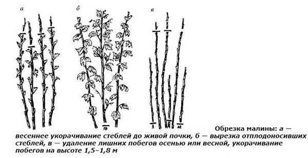 Remarque! La taille principale des framboises est effectuée, en règle générale, après la fructification (en automne), et au printemps, ils ne font que la taille corrective, plus précisément sanitaire.