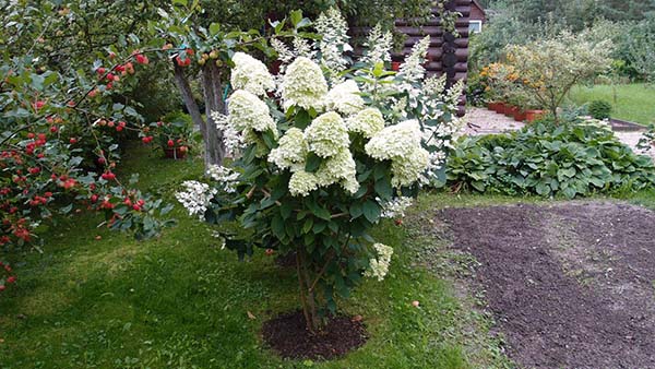 Intéressant! L'hortensia arboricole pousse comme un buisson (contrairement à son nom), et hortensia paniculé, d'habitude, a seulement 3-4 pousses ou généralement seulement 1 tige... De plus, à partir de 3-4 pousses, vous pouvez également former un hortensia sous une forme standard. Seul le fond n'aura pas un tronc, mais 3-4 tiges.