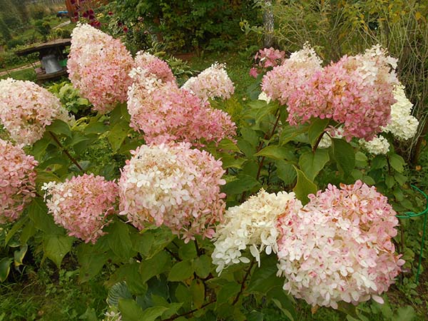 Au fait! Dans certaines variétés d'hortensias paniculaires, les inflorescences paniculaires blanches deviennent roses à l'automne.