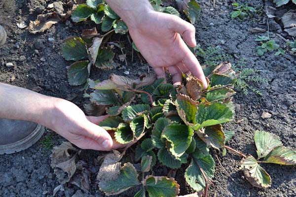 Ainsi, avec l'arrivée de la chaleur, immédiatement après l'ouverture des buissons après l'hiver, les fraises sont examinées pour détecter les dommages et les foyers de maladie (en particulier les champignons, que vous pouvez identifier par des taches sur les feuilles). Et puis ils enlèvent les feuilles séchées, abîmées ou malades les fraises, en d'autres termes, effectuent une taille sanitaire.