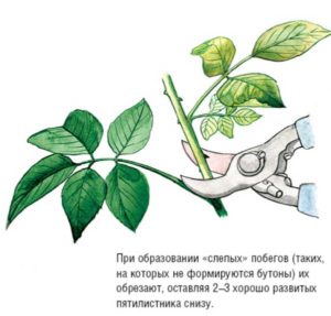 - Toutes les pousses fanées que vous devez couper au moins après la première vraie feuille ou en dessous de 2 à 4 feuilles (complexe vraies feuilles les roses ont 5 ou 7 feuilles, et les fausses feuilles les plus hautes sont toujours à trois feuilles). En d'autres termes, vous devez raccourcir les pousses de 20 à 40 cm (en fonction de la croissance du buisson).