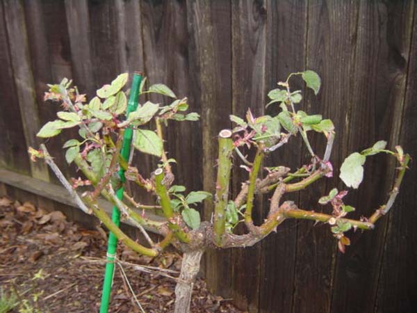 Les roses de thé hybrides pour l'hiver sont taillées environ 1/2 ou à la hauteur de l'abri, en règle générale, ce 40-50 cm du sol. En conséquence, environ 2-4 bourgeons sur chaque pousse.