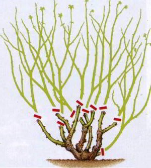 - Simplifié - invention des fleuristes ces dernières années. Il consiste à nettoyer le buisson des branches séchées et à tailler les pousses restantes à la moitié de leur hauteur. On a remarqué que cette manipulation produit de très gros bourgeons.