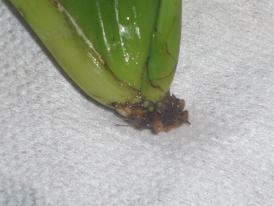 Après sa formation, il est strictement interdit d'arroser l'orchidée pendant plusieurs semaines. Après cela, un léger arrosage est effectué. Grâce à ces actions, l'orchidée fleurira. Lorsqu'un ou plusieurs pédoncules apparaissent à l'aisselle des feuilles, il est recommandé de reprendre l'arrosage.