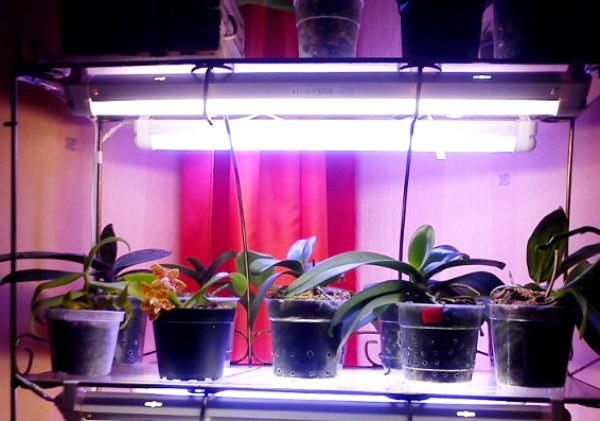 Pour les orchidées de l'espèce Wanda, ils utilisent des lampes complexes avec des lampes rouges et bleues, leur ajoutant la lumière d'une économie LED standard. Allumez-les pendant au moins une heure le matin et le soir.