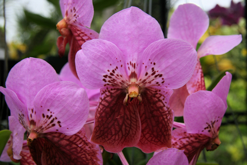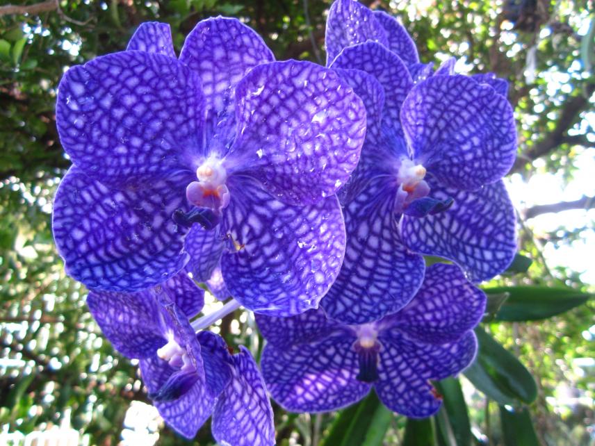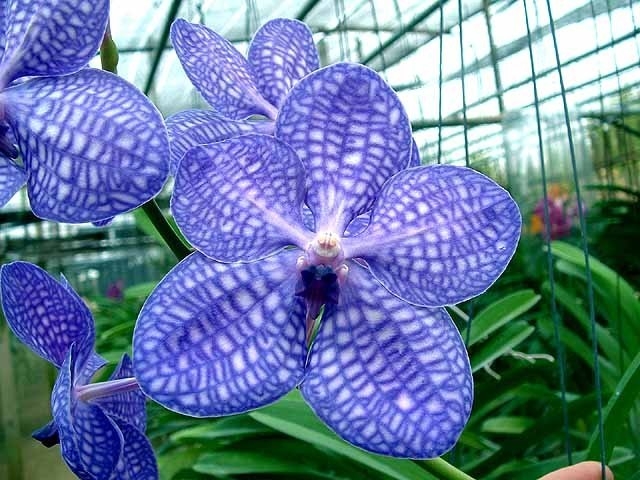 4) Vanda rothschildiana... L'épiphyte a été obtenue en croisant Wanda blue et Sandera. Une orchidée a toutes les caractéristiques de ses parents, la différence ne sera que dans les fleurs, elles sont plus petites, jusqu'à 5 cm de diamètre, mais il y en a beaucoup dans le pinceau, parfois jusqu'à 20 pièces.