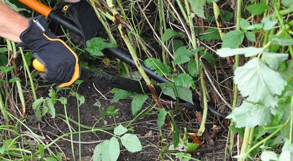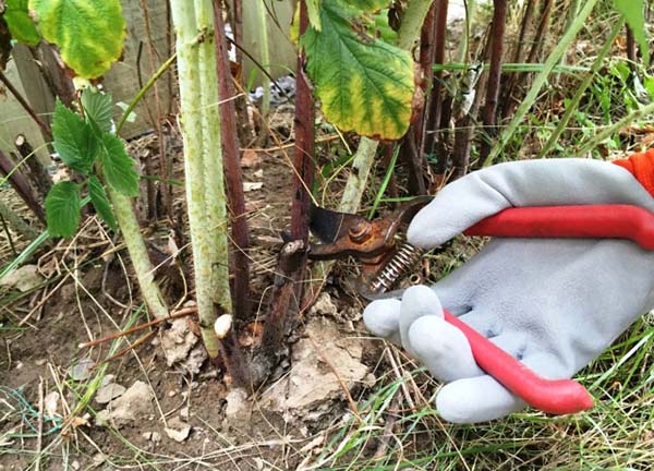 - Si les framboisiers sont affectés par la tige de framboisegalitsa, puis afin de sauver les pousses annuelles, elles doivent être coupées en dessous de l'épaississement (nids où se trouvent les larves), en laissant une souche d'au moins 40 à 60 centimètres (bien que certains résidents d'été soient assurés et découpés complètement, c'est-à-dire à la base même).