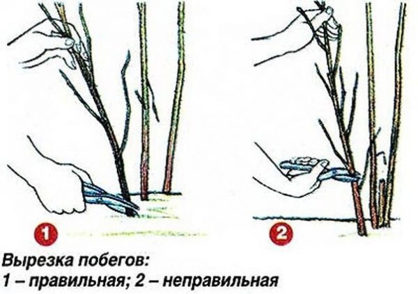 - Vous devez couper pousses de deux ans qui ont fructifié, et sec, annuelles faibles et douloureuses.