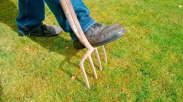 Important! Si un filet de taupe est posé sous votre pelouse (à une profondeur de 5 à 10 cm), l'aération pour l'hiver doit encore être effectuée, mais il est préférable de percer le sol plus soigneusement avec des fourches de jardin ordinaires.
