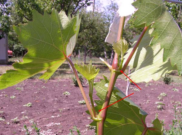 Important! Si vous allez effectuer la procédure monnaie d'été, il vous faudra ensuite laisser beaucoup de feuilles de beau-fils pour obtenir le nombre de feuilles nécessaire à une bonne maturation des grappes (rappelez-vous que 1 kg de raisin nécessite en moyenne 25 feuilles).