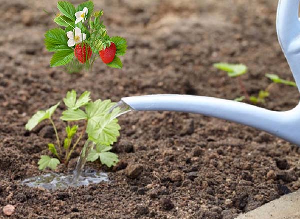 Si vous décidez néanmoins de planter des fraises au milieu de l'été, vous devez en prendre très soin, à savoir qu'elle doit être arrosée presque tous les jours par aspersion (mais les gouttes doivent être petites).