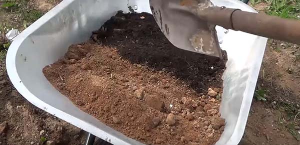 Le mélange de sol pour le remplissage de la fosse de plantation peut être préparé en mélangeant soigneusement les composants suivants: 2 parties de gazon et 1 partie de sable ou d'argile, ou en prenant 3 parties de gazon, 1 partie de tourbe et 1 partie de sable de rivière. Si vous le souhaitez, pour une meilleure survie dans le mélange de sol, vous pouvez ajouter une poignée d'engrais azoté et n'oubliez pas de bien le mélanger avec le sol.