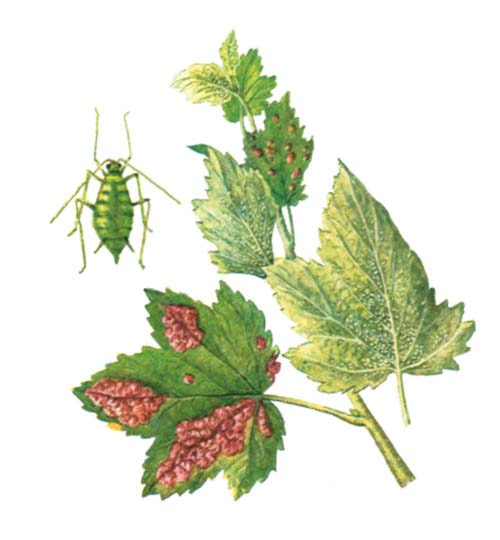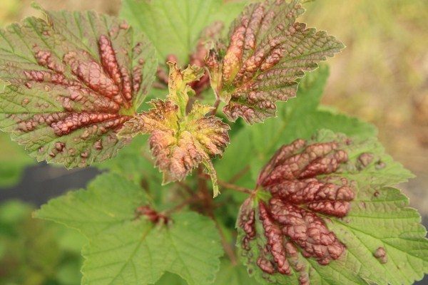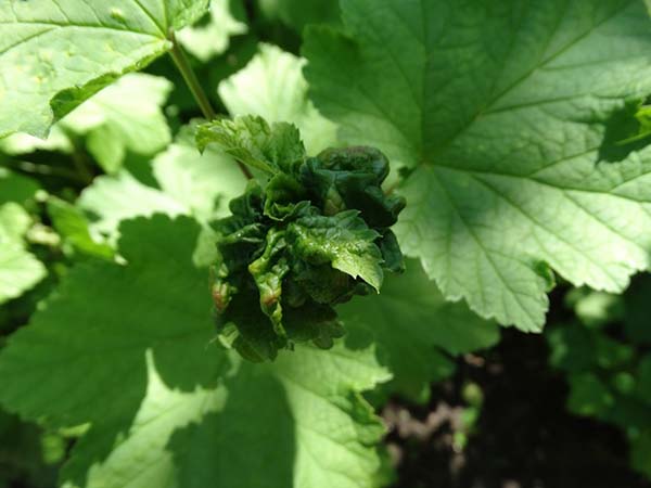 Si sur votre groseille caractéristique taches rouges et cloques (cependant, ces bulles ne prennent pas de couleur immédiatement), cela signifie que votre buisson de baies a été attaqué feuille puceron de la galle (Capitophorus ribis), qui s'appelle aussi puceron du groseille ou puceron kystique du cassis.