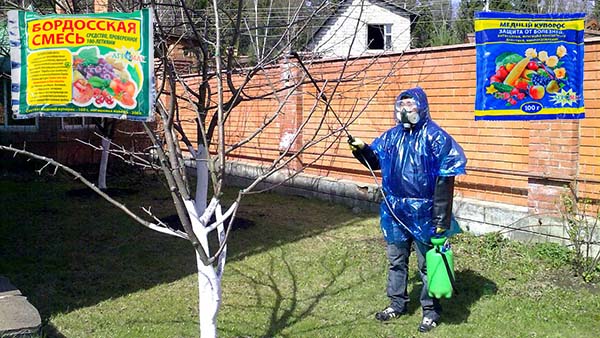 Ainsi, le produit chimique (fongicide) le plus populaire pour un tel traitement est liquide bordeaux (Solution à 3%). Si vous n'avez pas réussi à le traiter avant le début de la saison de croissance, vous devriez déjà le traiter plus tard (lorsque les fruits naissent) avec seulement une solution à 1%, sinon l'arbre risque de brûler.