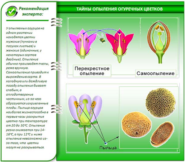 En fait, c'est important quand il s'agit de variétés de concombres pollinisées par les abeillesmême si hybrides autogames (parthénocarpiques) à basse température, le pollen ne mûrit pas et à haute température, il devient stérile.