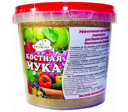 Intéressant! La farine d'os contient également beaucoup de calcium (jusqu'à 45%) et très peu d'azote (jusqu'à 1%).