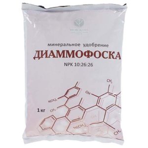 - Diammofoska - 10% d'azote, 26% chacun de phosphore et de potassium (20-30 grammes).