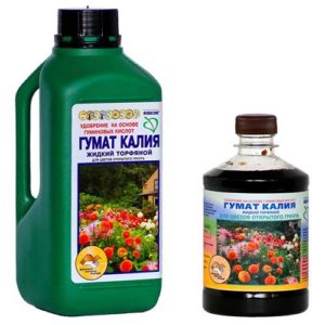 Très bon à utiliser humatelequel contribuent à une meilleure absorption des engrais minéraux. Par conséquent, vous pouvez d'abord préparer une solution humate (par exemple, Humate de potassium), puis ajoutez-y un engrais minéral complexe, par exemple le même Nitroammofosk.