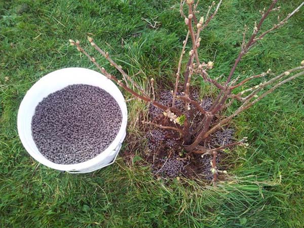 - Nitroammofoska (azote, phosphore, potassium - 16% chacun). Préparez la solution à raison de 20 à 30 grammes pour 10 litres d'eau. Versez environ 5 litres sous un buisson adulte.