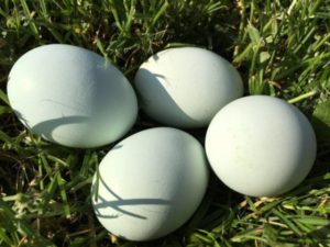 Intéressant! La capacité de pondre de nombreux œufs chaque année n'est pas la seule qualité qui a fait de la race Legbar un favori des éleveurs de volailles. Leurs testicules sont également très beaux: ronds, avec une teinte bleutée de la coquille.