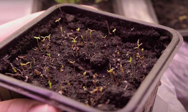 - Saupoudrez les graines sur le dessus du sol. Car les graines sont très petites, elles peuvent être mélangées avec du sable et semées avec une feuille pliée ou, pour ainsi dire, «saler» la terre avec des graines.
