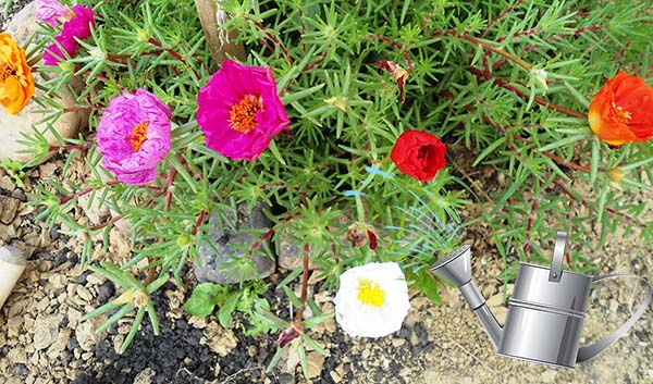 La chose la plus importante dans l'entretien d'un pourpier est un arrosage régulier, mais pas trop fréquent, cela suffira environ 1 fois en 4-6 jours. Naturellement, les jours chauds et secs, vous devez arroser plus souvent, mais d'un autre côté, la plante peut être qualifiée de résistante à la sécheresse.