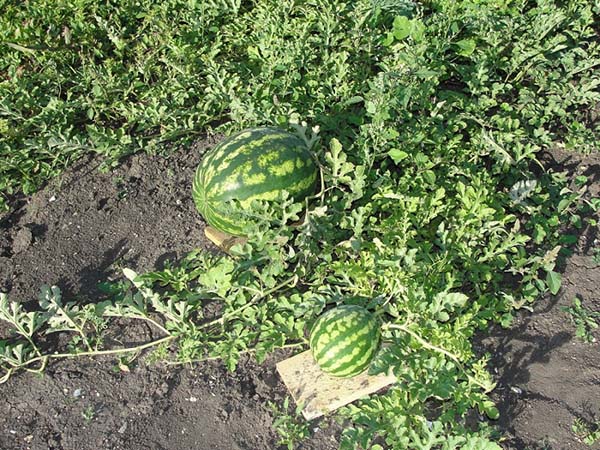 Lorsque la pastèque cesse de grossir et commence à gagner du sucre, l'alimentation, comme l'arrosage, doit être arrêtée.