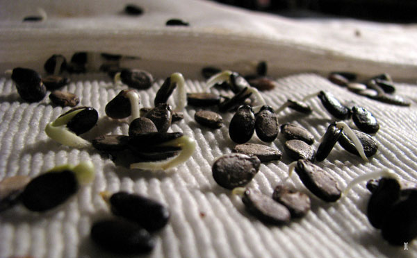 Important! Inspectez périodiquement vos graines pour la germination, en vous rappelant d'humidifier la gaze (coton).