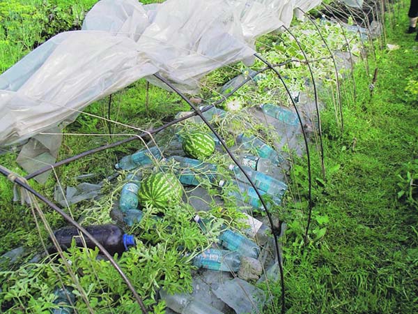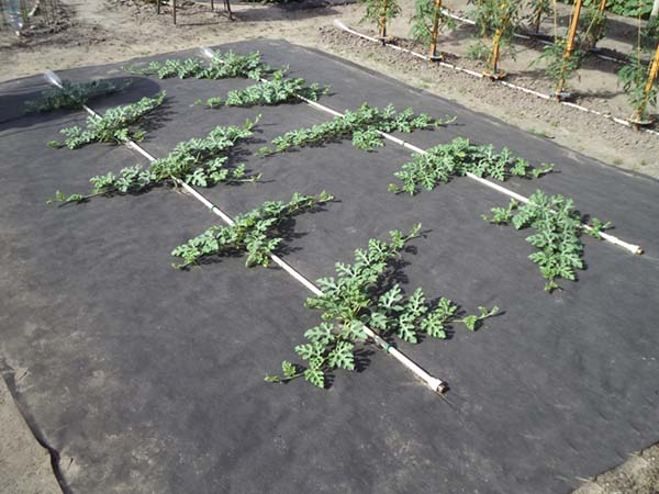 De nombreux jardiniers des régions du nord préfèrent cultiver des pastèques sous un film noir, ou plutôt sous un non-tissé noir (spunbond ou lutrasil), en recouvrant leurs melons.
